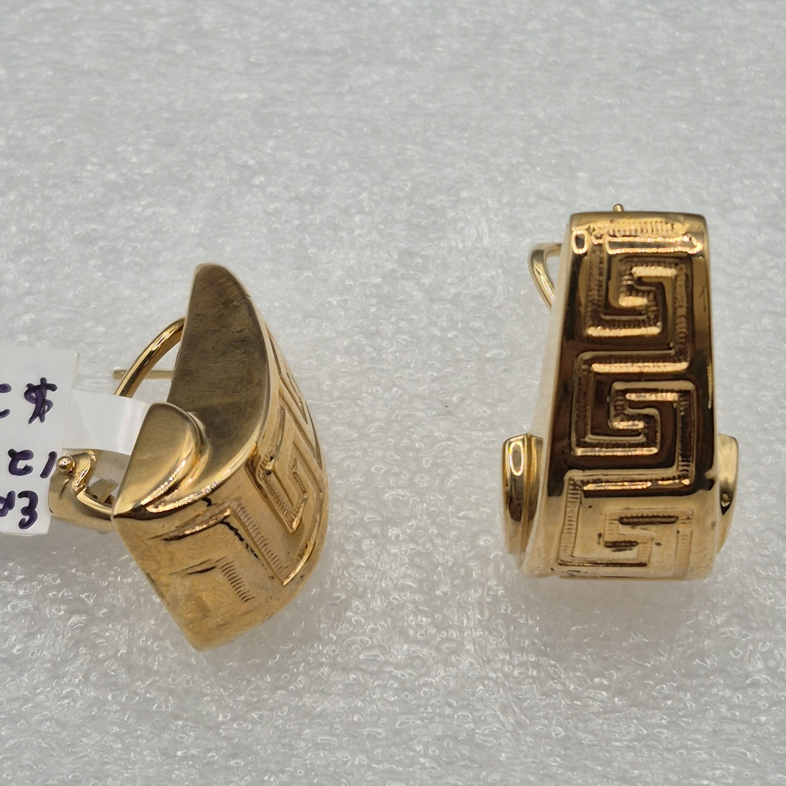 14kt Gold Lady’s Tapering Greek Key Design Earrings w/Omega Backs