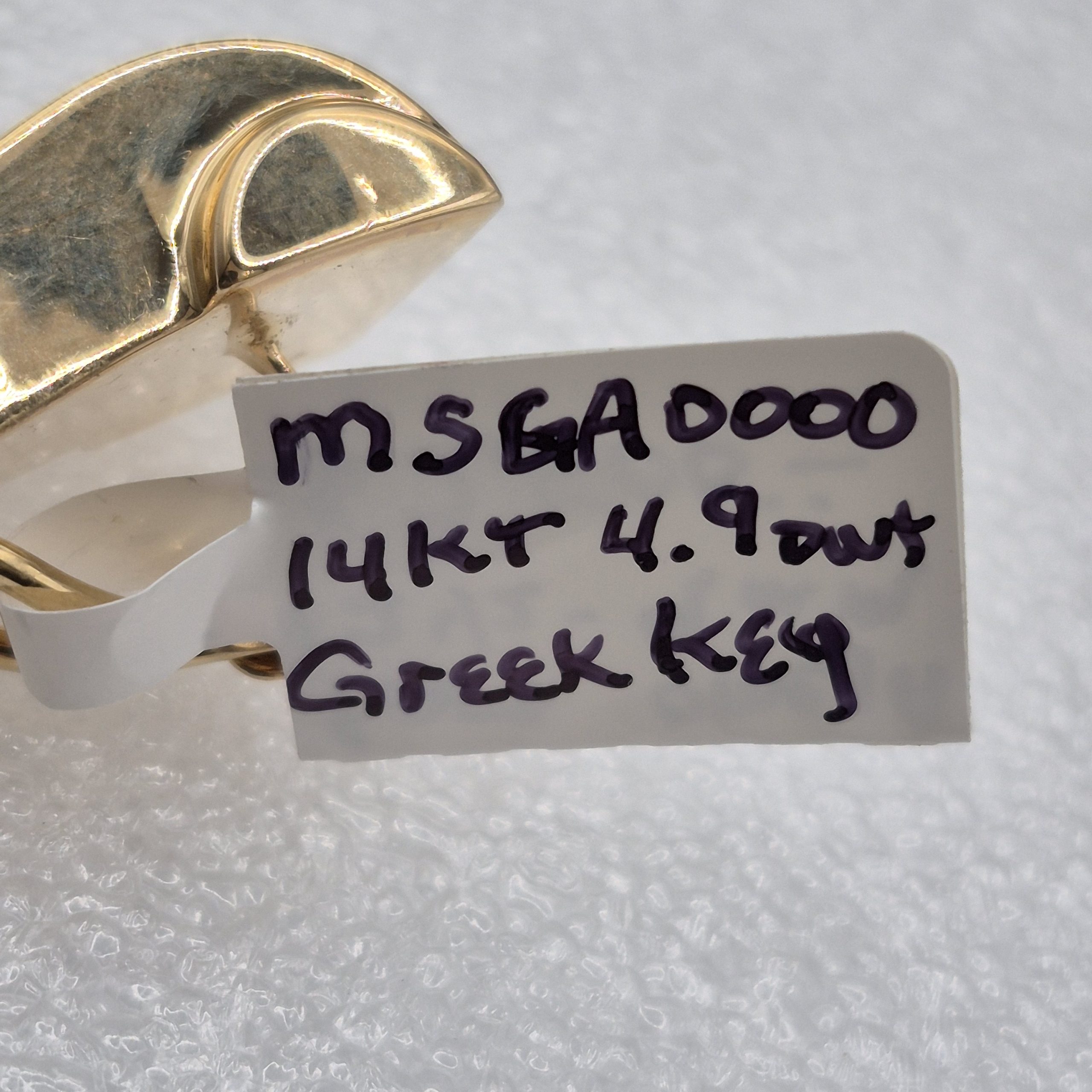 14kt  Lady’s 12.5mm Wide, Tapering, Greek Key Design, Polished Oval Hoop Earrings Weighing 4.9dwt. The Wide Look Design adds splash that livens up these beautiful earrings. They taper from 12.5mm down to 9mm for a Big, Bold Look that makes a beautiful statement. You don’t have to be Greek to LOVE these Earrings. Stock Number :MSGA0000. Buy This NOW for only $1195.00, before it’s GONE. All diamonds are hand selected by Mike George, Owner of MSG Jewelers, Inc.. We strictly grade all diamonds according to GIA standards and all are natural earth grown diamonds. Appraisal available upon request at time of purchase. NOTE: ALL SALES ARE FINAL IN THIS LIQUIDATION SALE